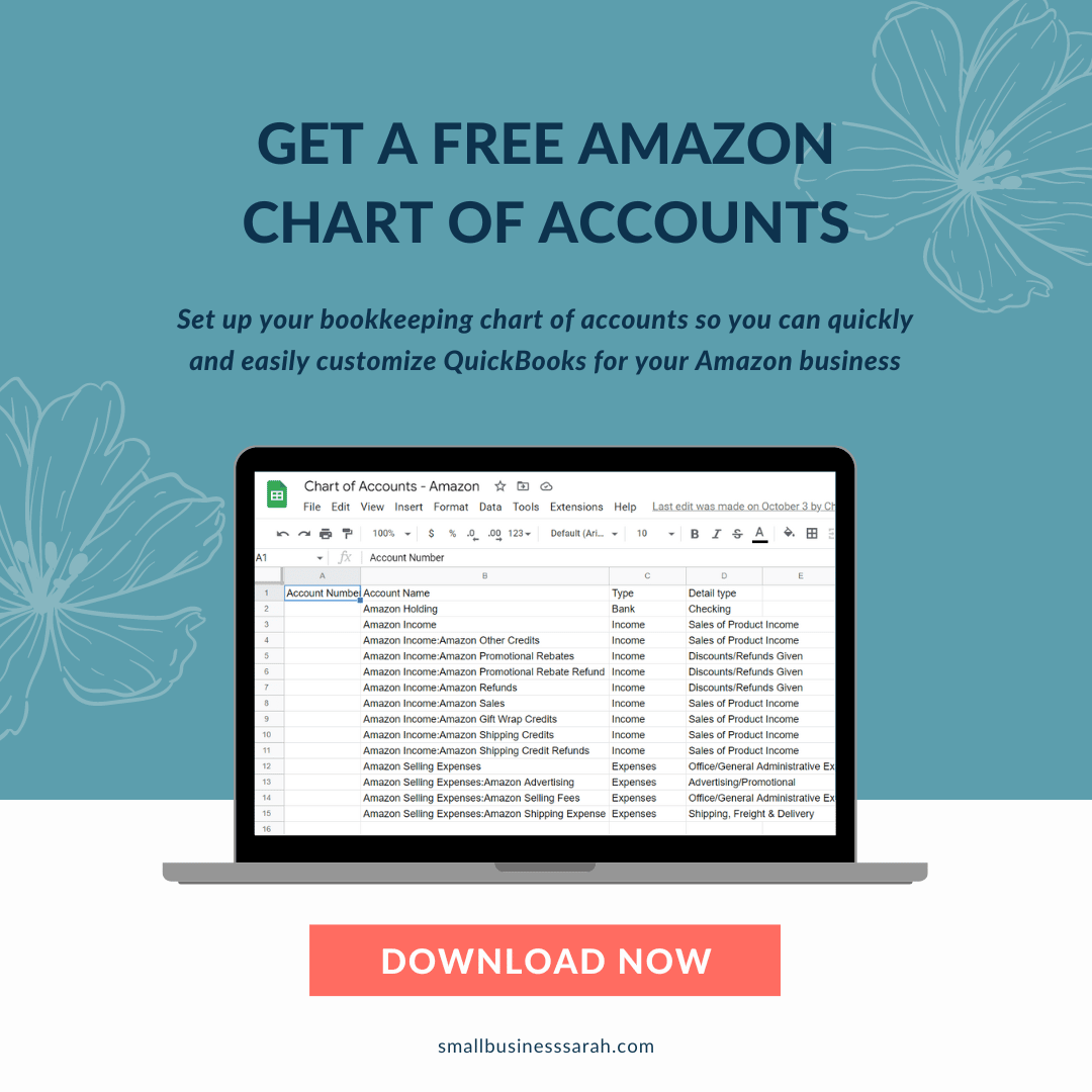 Hey Amazon Sellers, get your free custom chart of accounts CSV file so that you can quickly and easily customize your QuickBooks bookkeeping to your Amazon business.